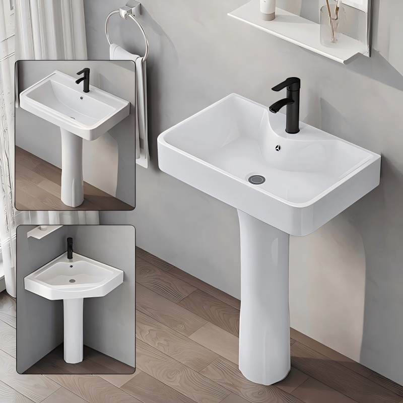 The pedestal ceramic basin is made from high-purity kaolin and natural mineral materials, through high-temperature firing above 1200°C and fine glazing techniques. The basin and pedestal are designed as either a one-piece integrated unit or separate assembled components, offering a stable structure and easy installation. Its smooth, dense glaze provides excellent easy-clean properties and corrosion resistance – a single wipe restores its cleanliness, with no discoloration or stain penetration even after long-term use. The pedestal ceramic basin combines classic ceramic quality with a space-saving design, meeting daily washing needs while enhancing the overall aesthetics of the space with its clean, simple silhouette. Whether for homes, hotels, or commercial projects, it is a trustworthy choice.
