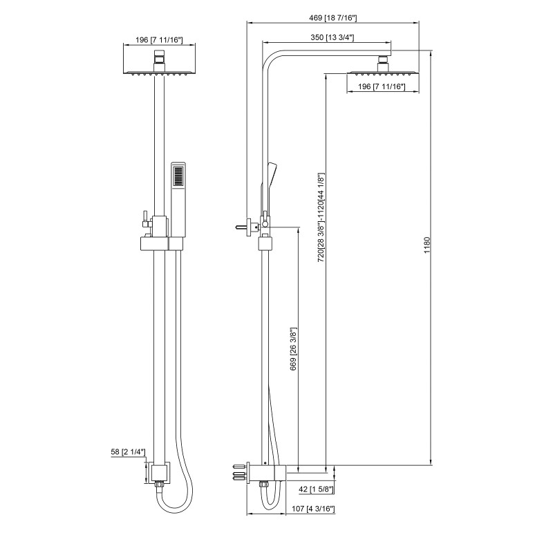 W18 7/16" H28 3/8" 8"Shower Headمعيار :