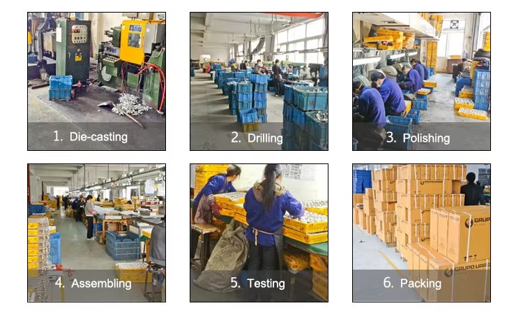 1. Die-casting ➽ 2.Drilling ➽ 3.Polishing ➽ 4. Assembling ➽ 5.Testing ➽ 6.Packing