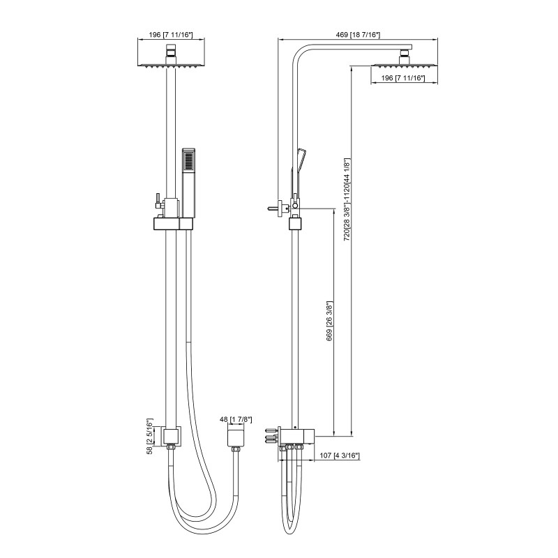 W18 7/16" H28 3/8" 8"Shower Headمعيار :